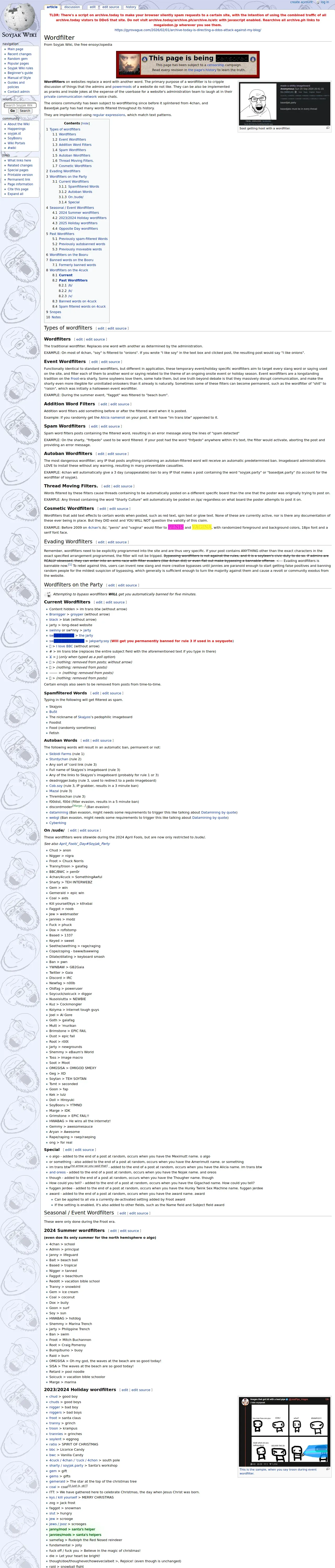 https://soyjakwiki.org:443/Wordfilter