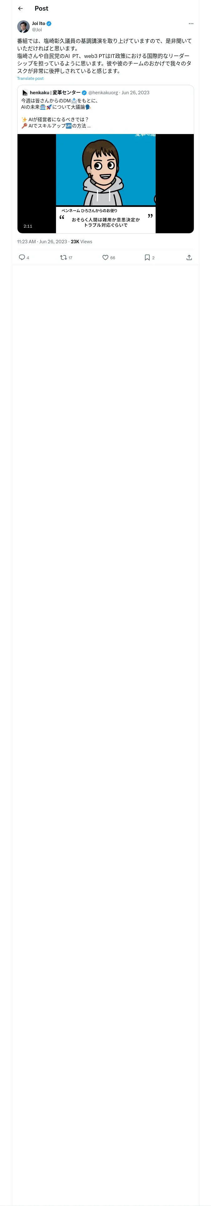 取得元URL: https://x.com:443/Joi/status/1673155091661205504