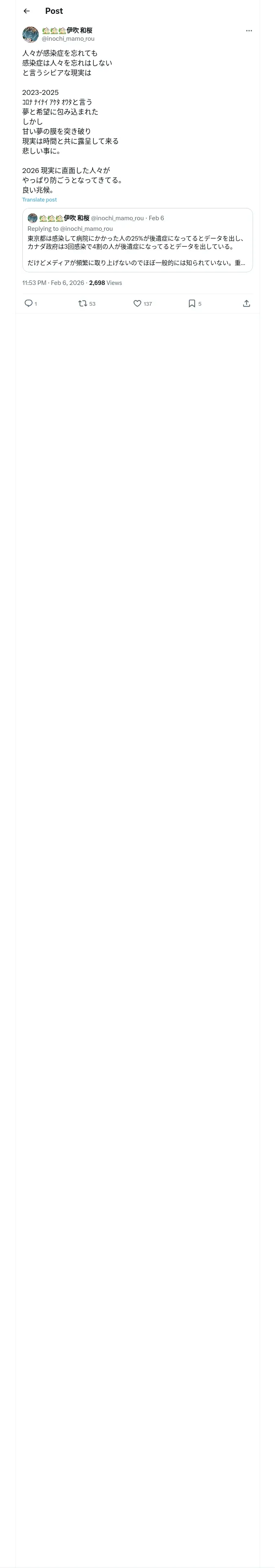 取得元URL: https://x.com:443/inochi_mamo_rou/status/2019786461848162755