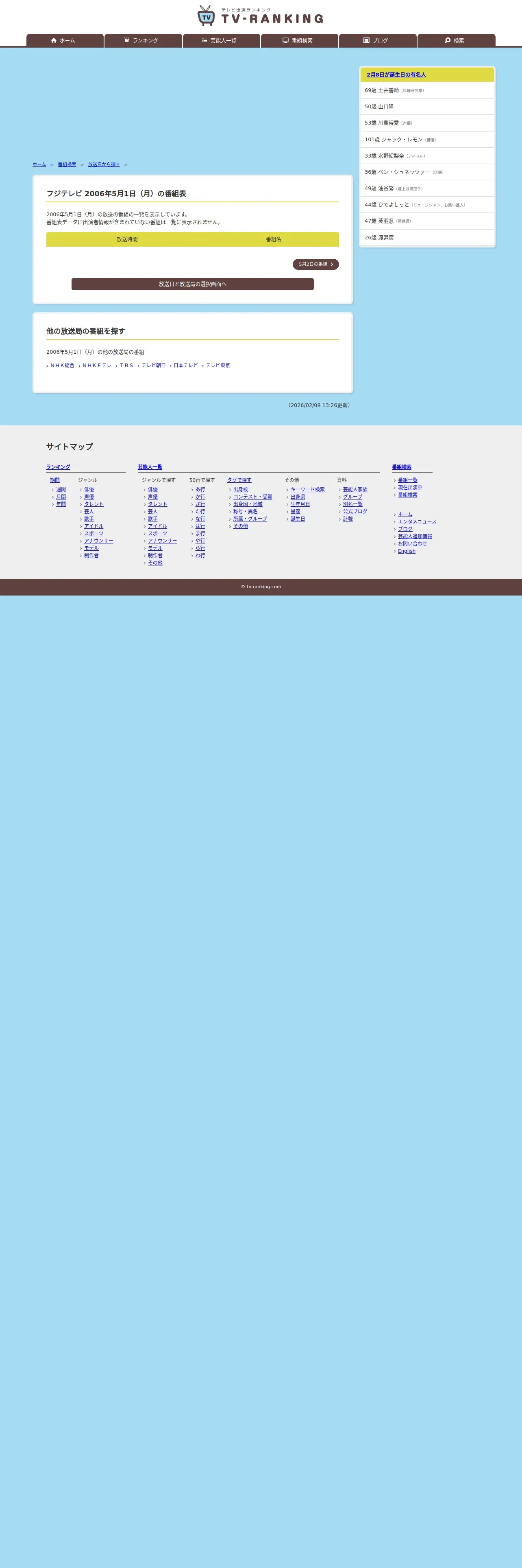 https://www.tv-ranking.com:443/program/date.php?date=20060501&sta=5