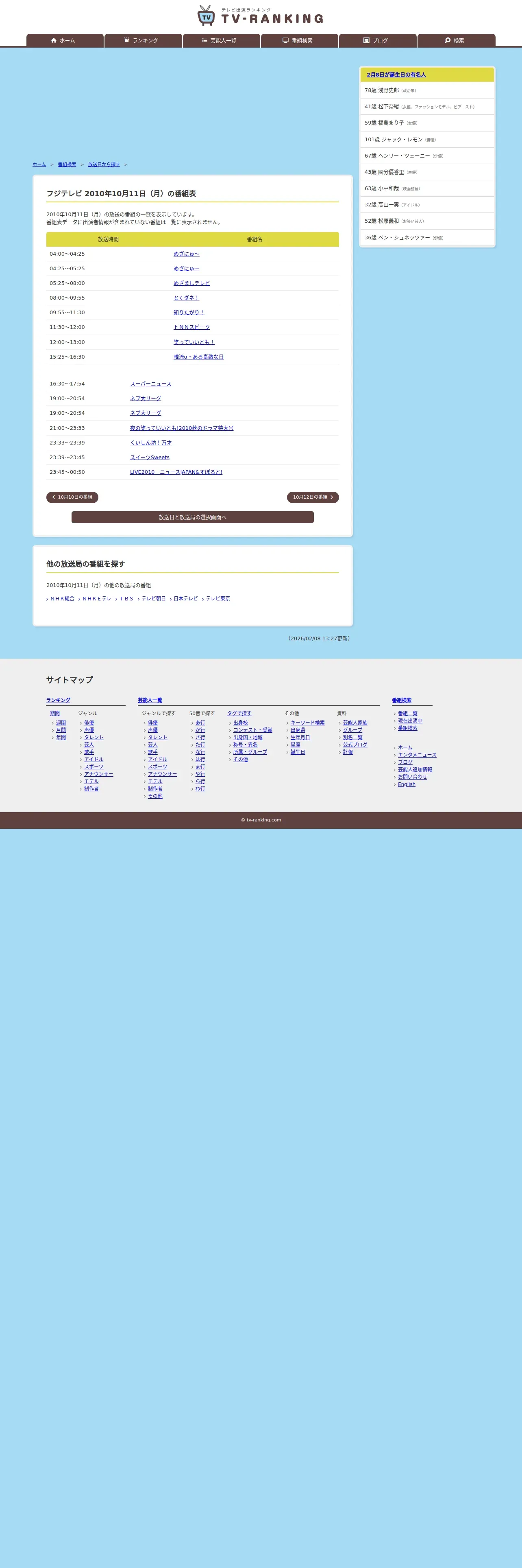 https://www.tv-ranking.com:443/program/date.php?date=20101011&sta=5