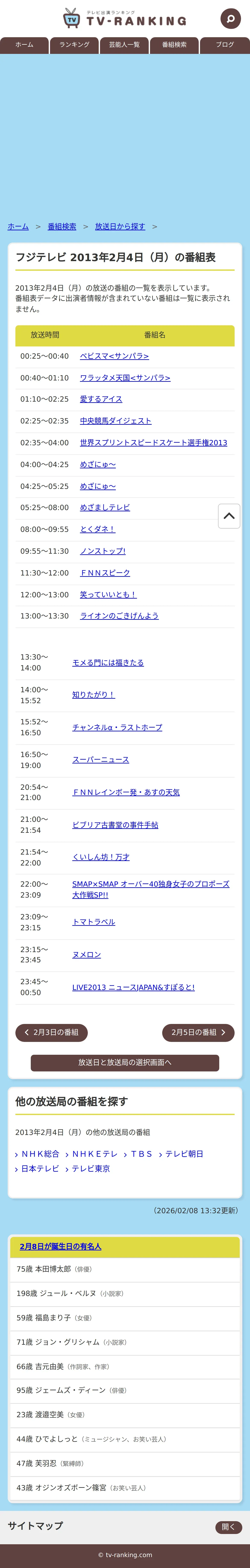 https://www.tv-ranking.com:443/program/date.php?date=20130204&sta=5