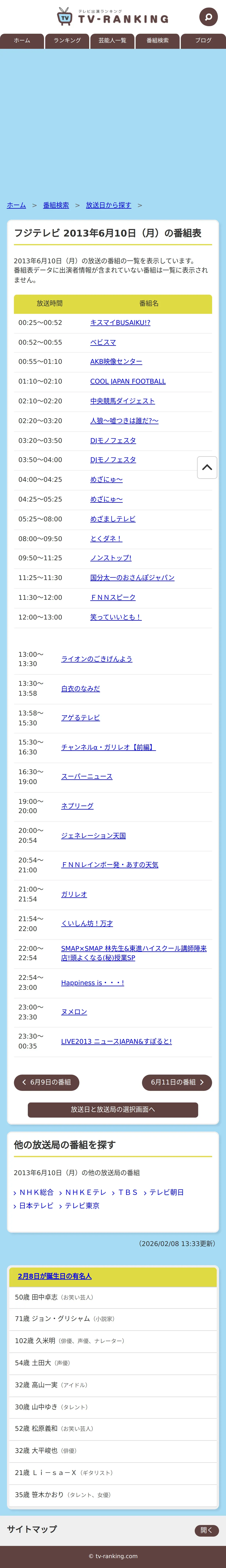 取得元URL: https://www.tv-ranking.com:443/program/date.php?date=20130610&sta=5