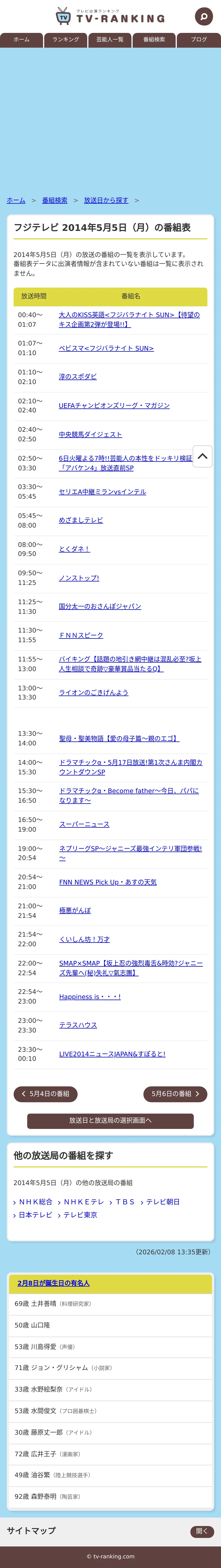 https://www.tv-ranking.com:443/program/date.php?date=20140505&sta=5