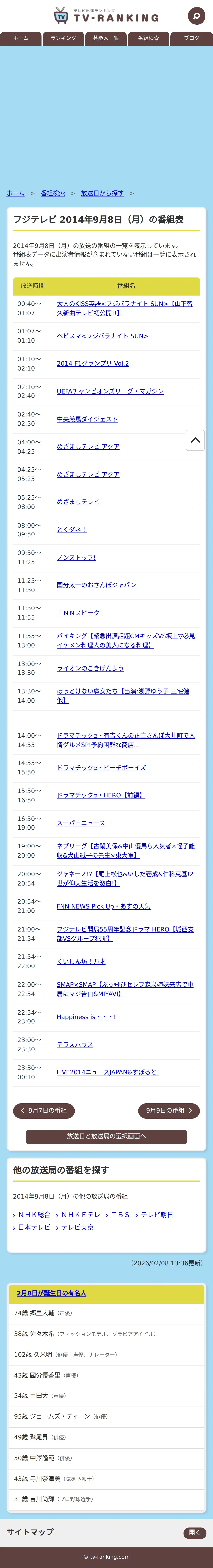 取得元URL: https://www.tv-ranking.com:443/program/date.php?date=20140908&sta=5