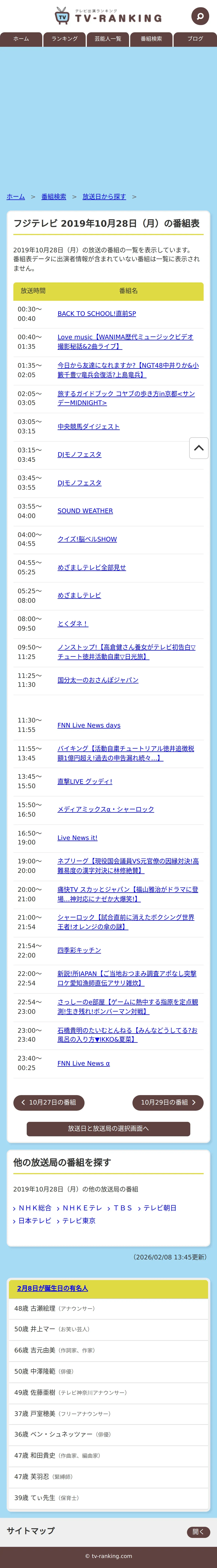 https://www.tv-ranking.com:443/program/date.php?date=20191028&sta=5