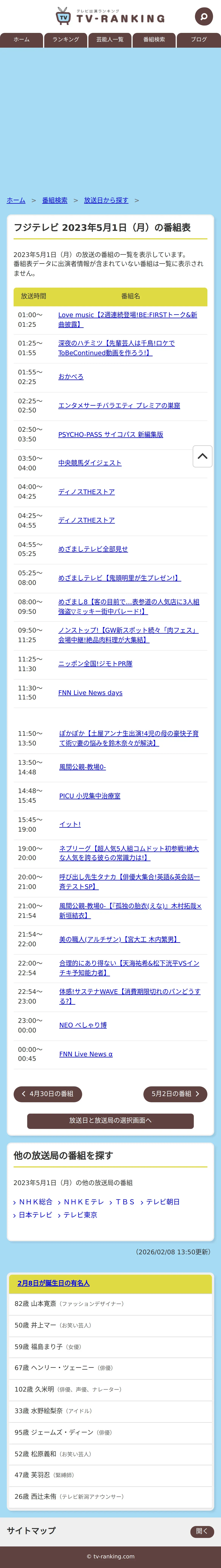 https://www.tv-ranking.com:443/program/date.php?date=20230501&sta=5