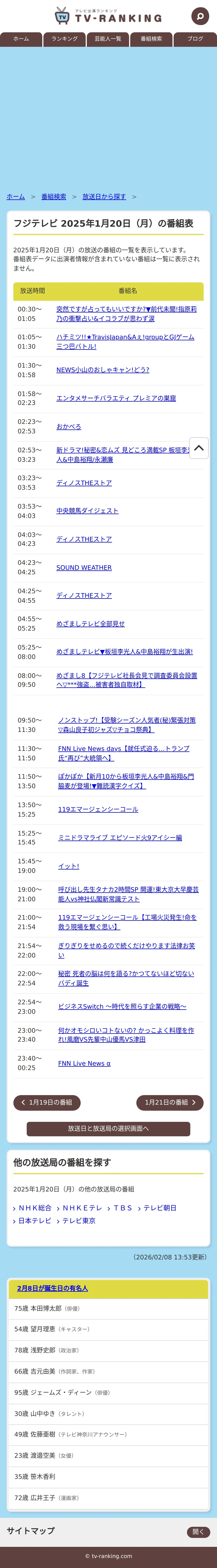https://www.tv-ranking.com:443/program/date.php?date=20250120&sta=5