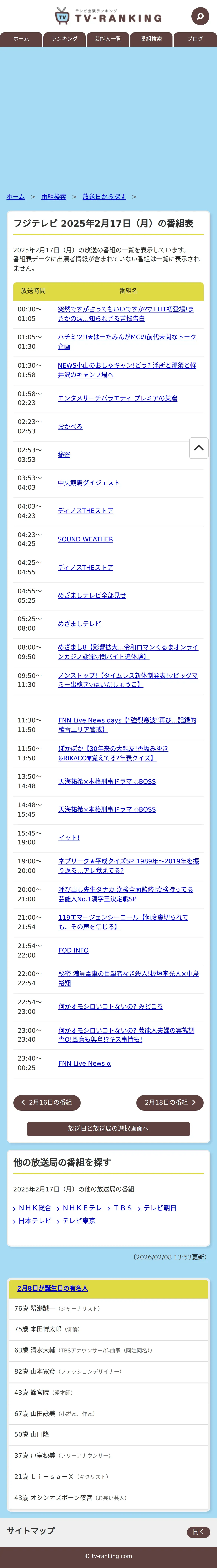 https://www.tv-ranking.com:443/program/date.php?date=20250217&sta=5