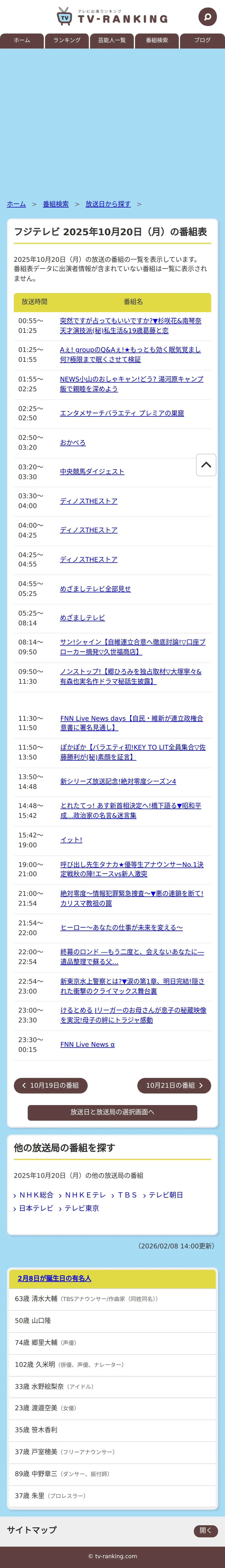取得元URL: https://www.tv-ranking.com:443/program/date.php?date=20251020&sta=5