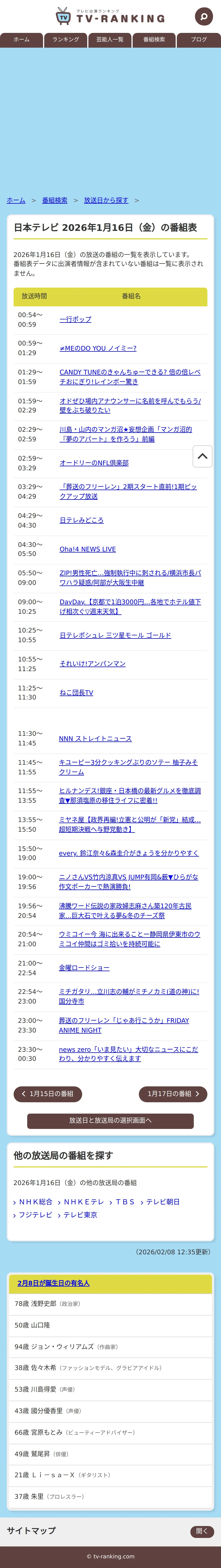 https://www.tv-ranking.com:443/program/date.php?date=20260116&sta=6