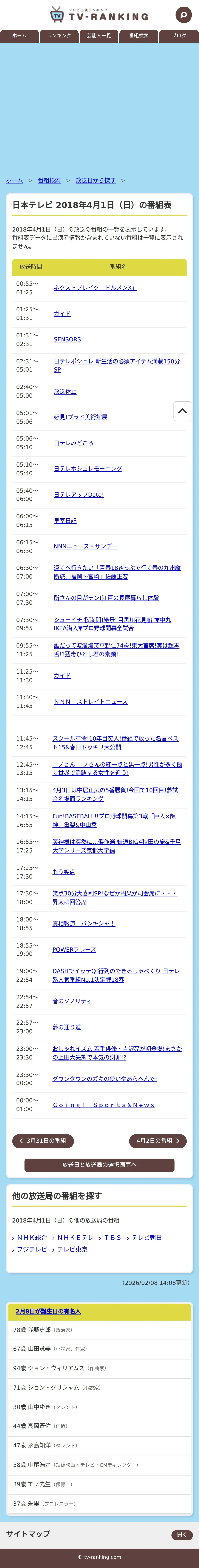https://www.tv-ranking.com:443/program/date.php?date=20180401&sta=6