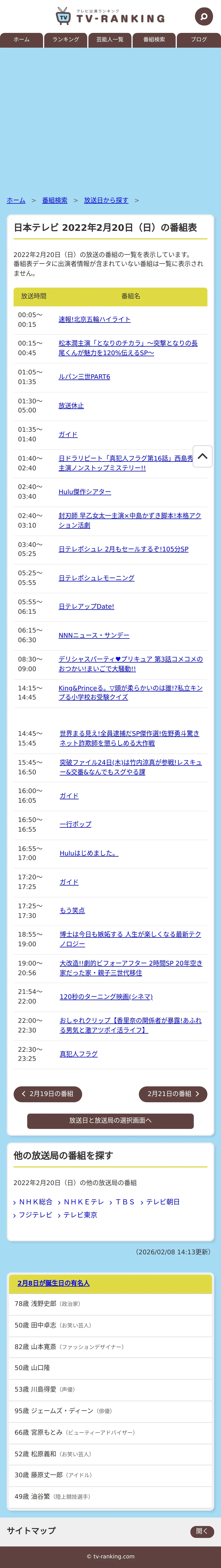 https://www.tv-ranking.com:443/program/date.php?date=20220220&sta=6