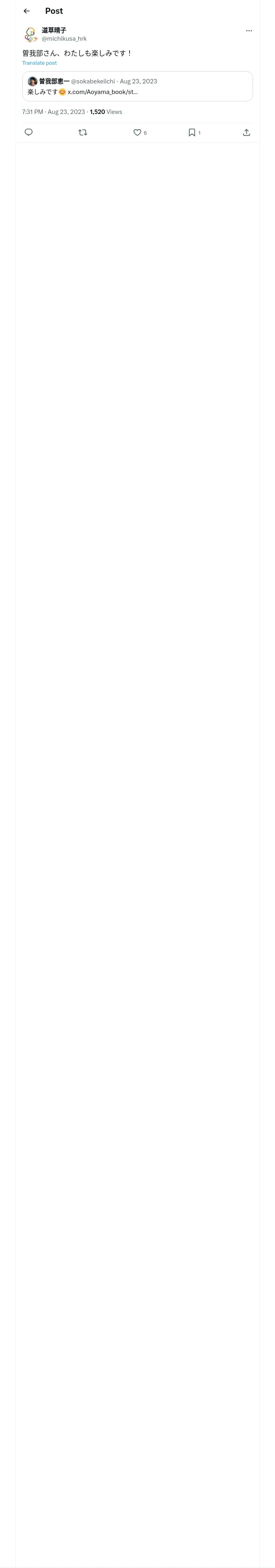 取得元URL: https://x.com:443/michikusa_hrk/status/1694296264584884511