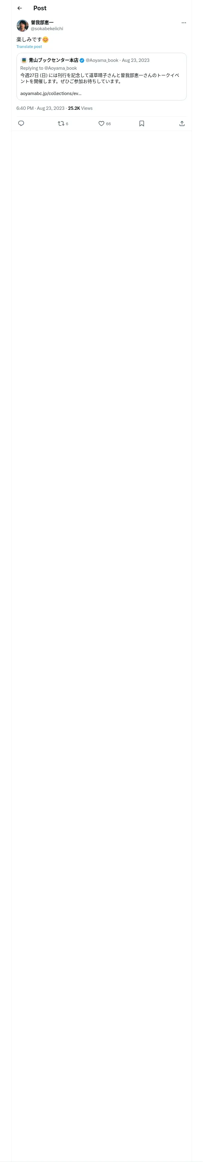 取得元URL: https://x.com:443/sokabekeiichi/status/1694283577268277695