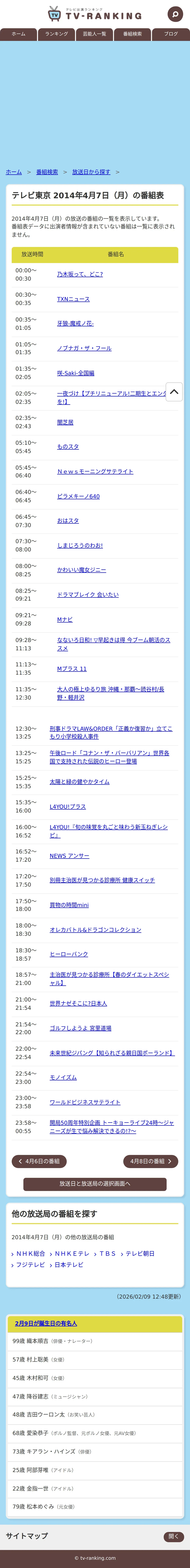 https://www.tv-ranking.com:443/program/date.php?date=20140407&sta=7