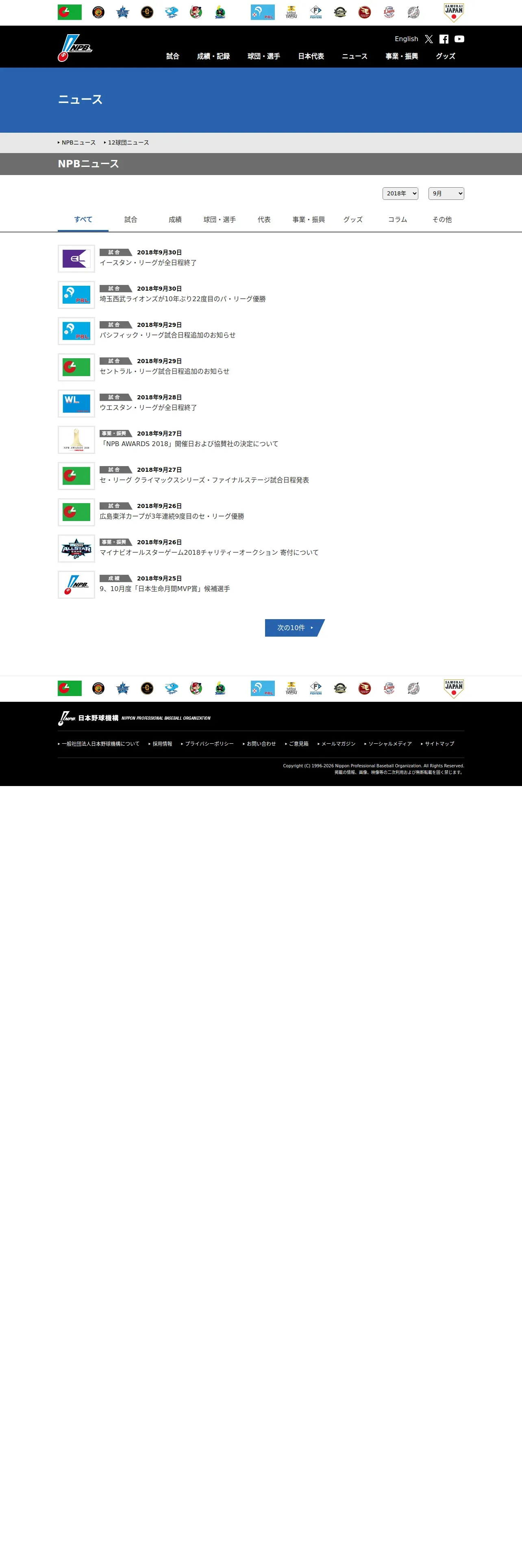 取得元URL: https://npb.jp:443/news/npb_all.html?date=201809