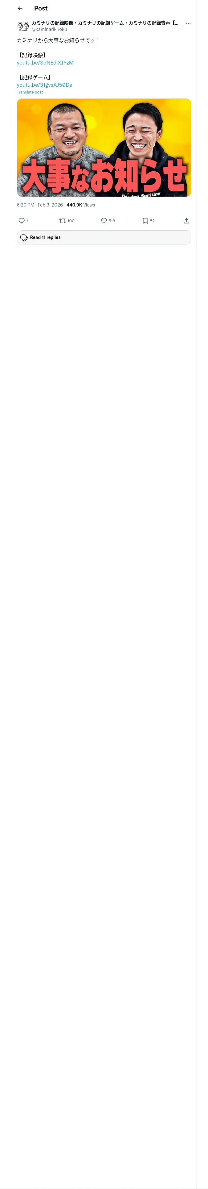 取得元URL: https://x.com:443/kaminarikiroku/status/2018615547257385126