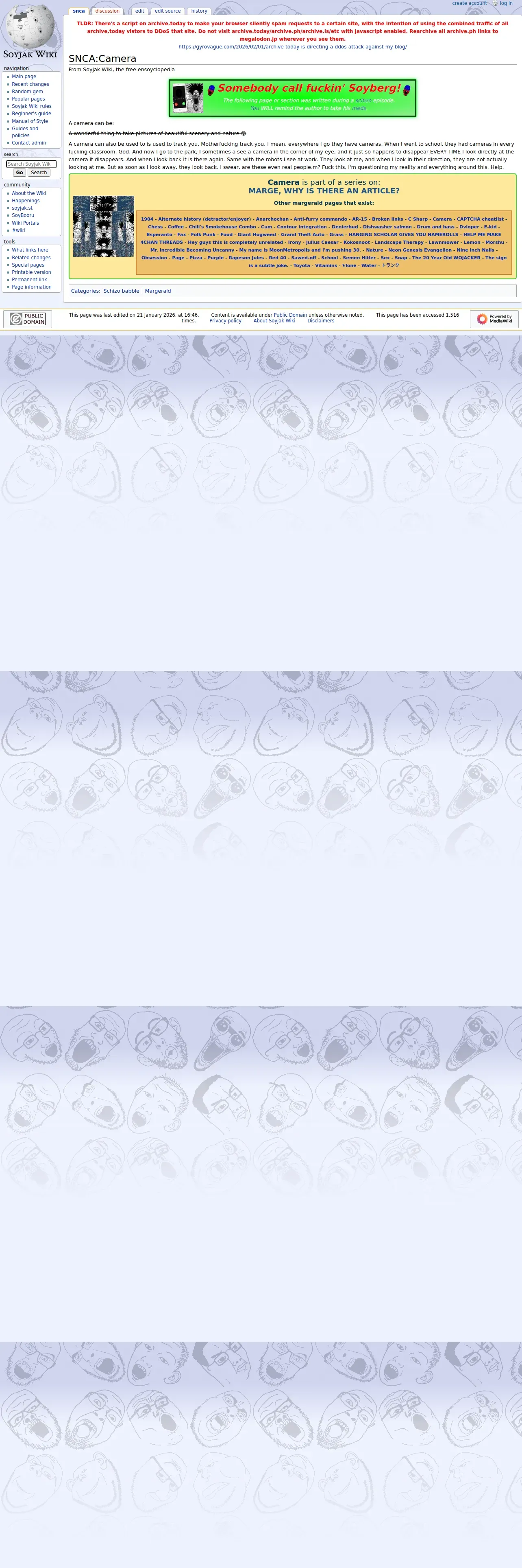 https://soyjakwiki.org:443/SNCA:Camera