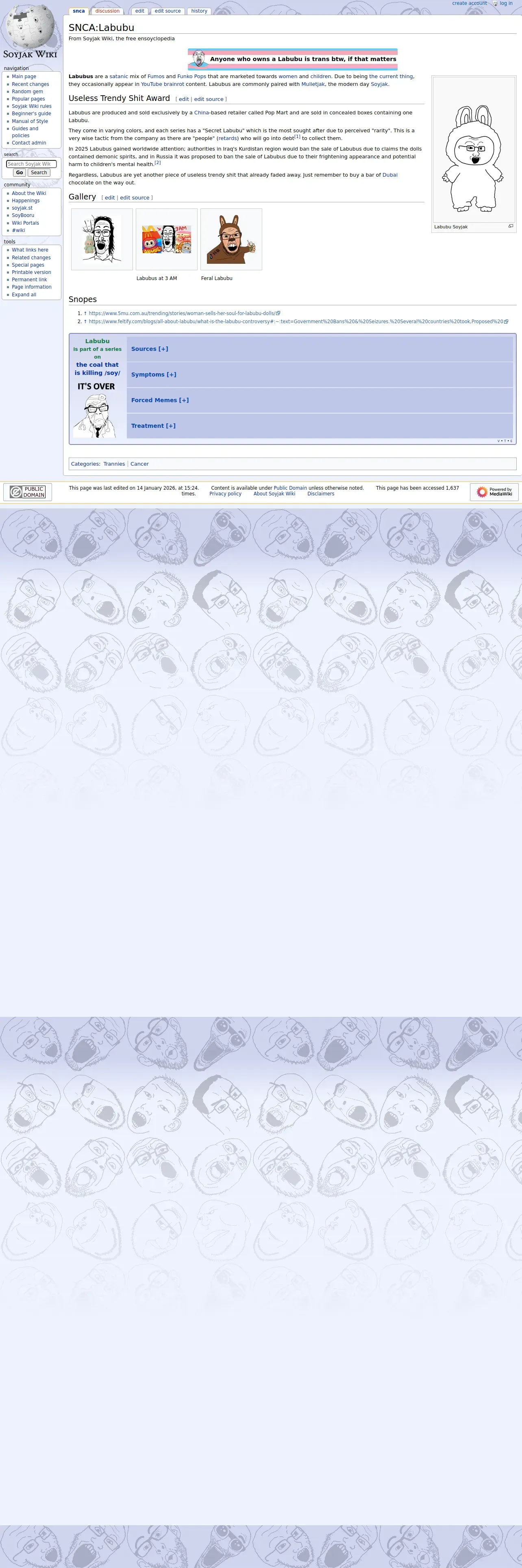 https://soyjakwiki.org:443/SNCA:Labubu