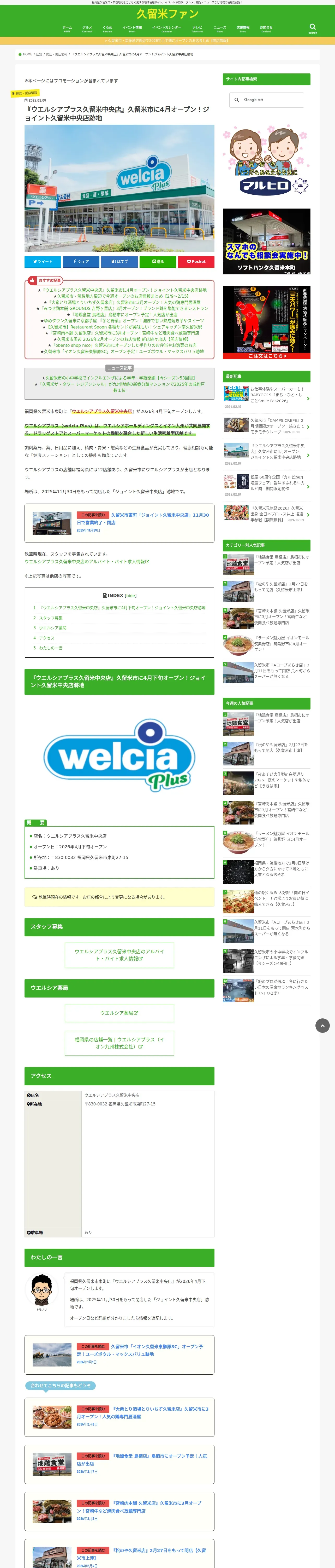 https://kurumefan.com:443/welcia-plus-kurumechuouten