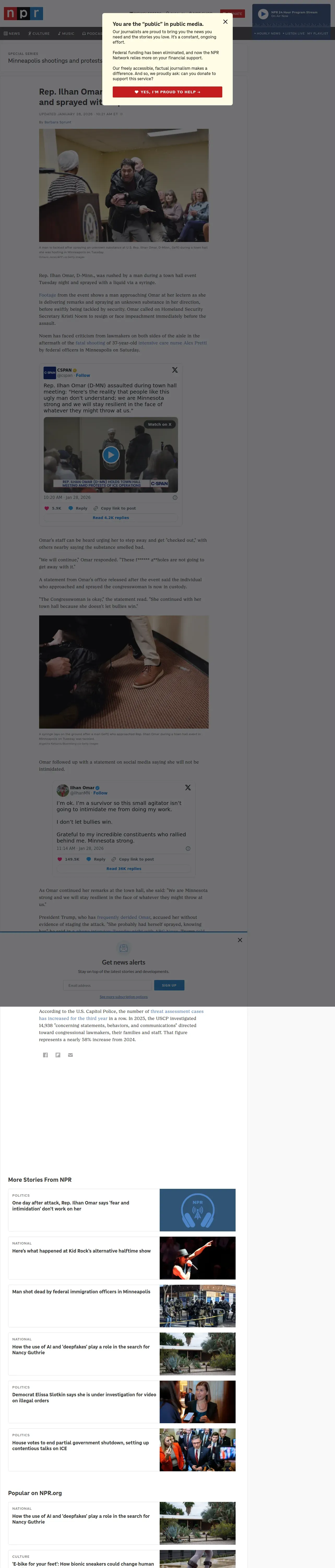 取得元URL: https://www.npr.org:443/2026/01/27/g-s1-107625/ilhan-omar-sprayed-town-hall