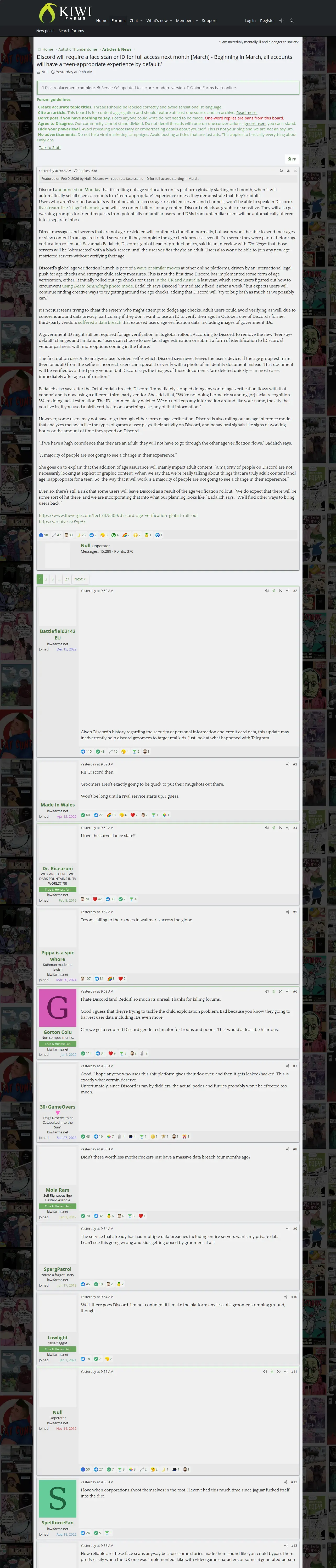 取得元URL: https://kiwifarms.st:443/threads/discord-will-require-a-face-scan-or-id-for-full-access-next-month-march.238821/