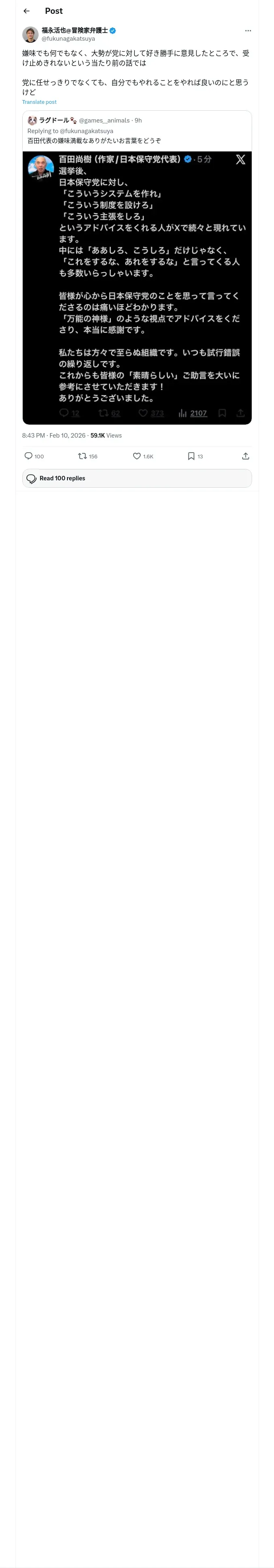 https://x.com:443/fukunagakatsuya/status/2021188232520536317