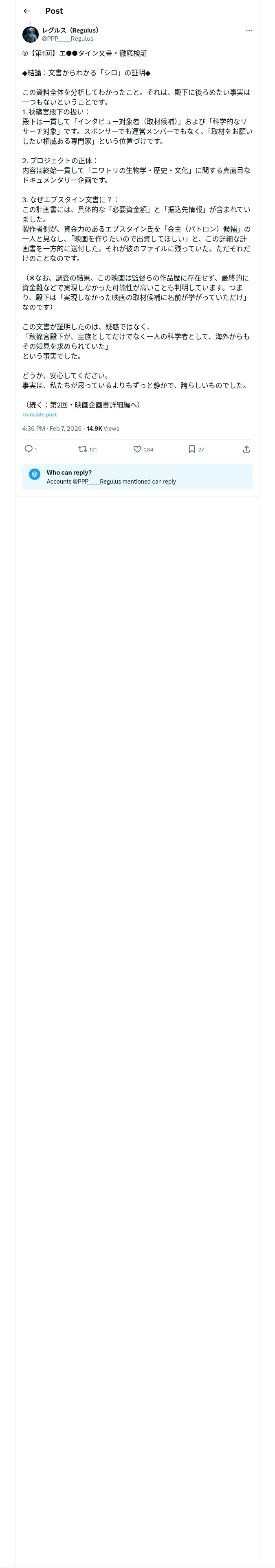 取得元URL: https://x.com:443/PPP_____Regulus/status/2020038903835816238