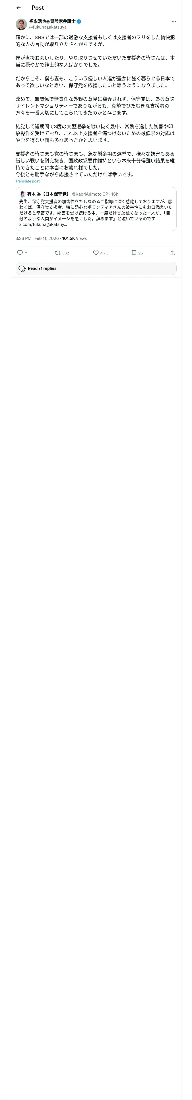 取得元URL: https://x.com:443/fukunagakatsuya/status/2021471427174830162