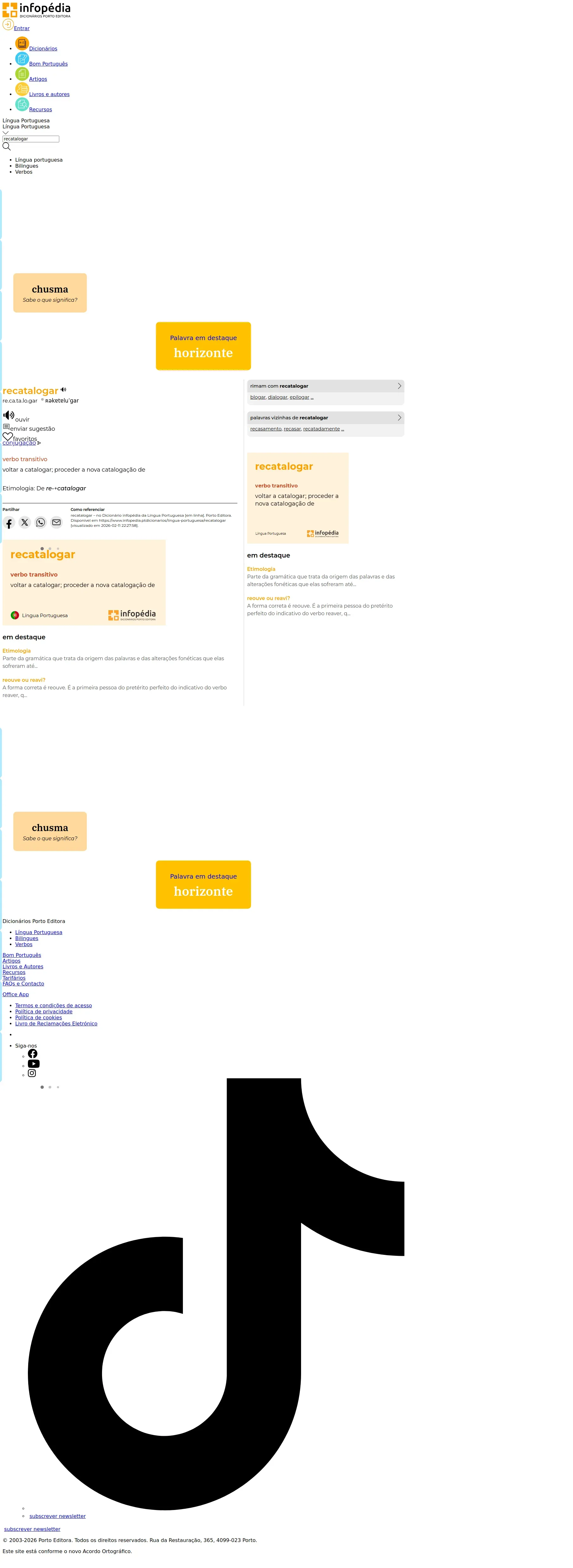 https://www.infopedia.pt:443/dicionarios/lingua-portuguesa/recatalogar