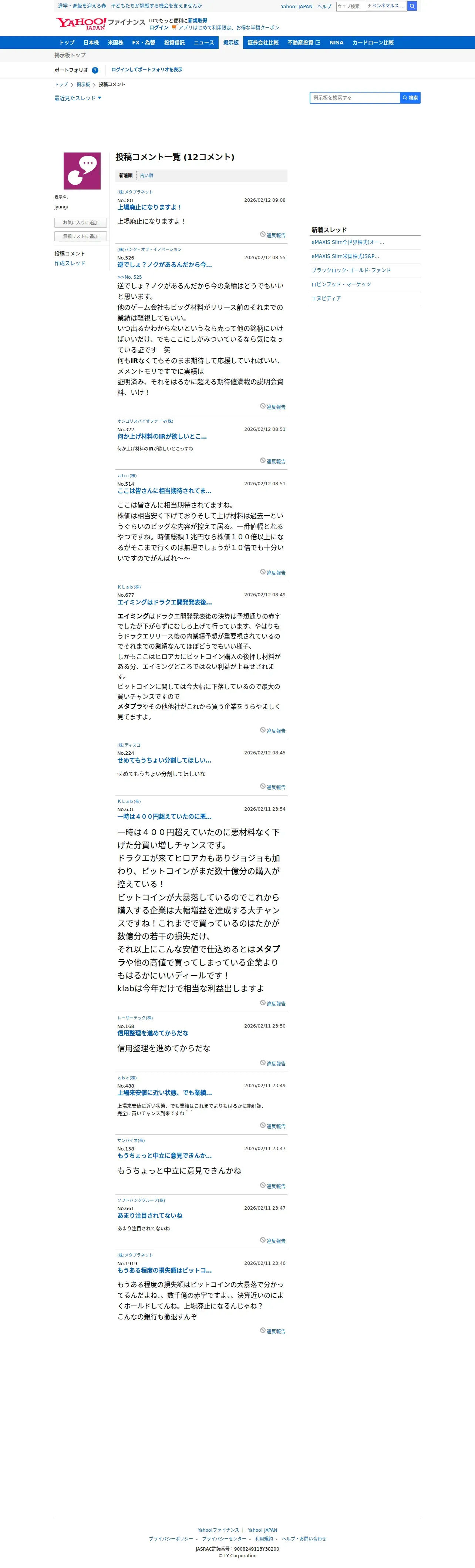 https://finance.yahoo.co.jp:443/cm/personal/history/comment?user=36206e2f63a9565183ea11a10a9f7b37250864720b2d6614c2647c4a9d67ef7b