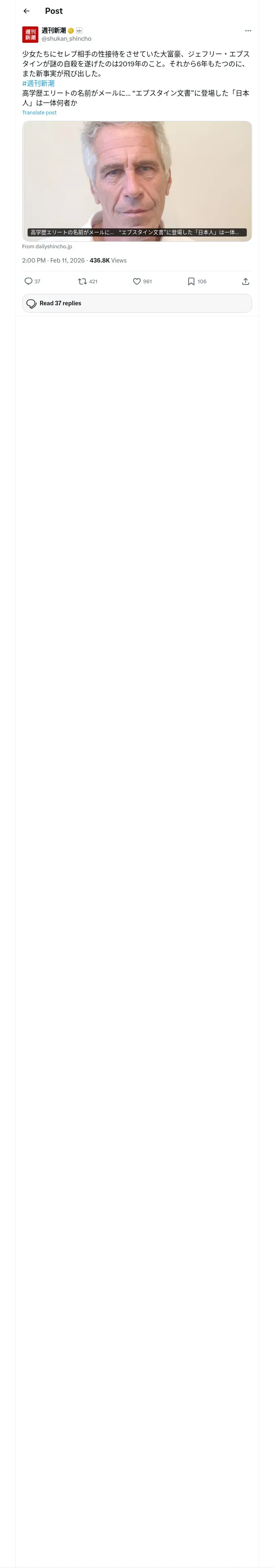 https://x.com:443/shukan_shincho/status/2021449115025146012
