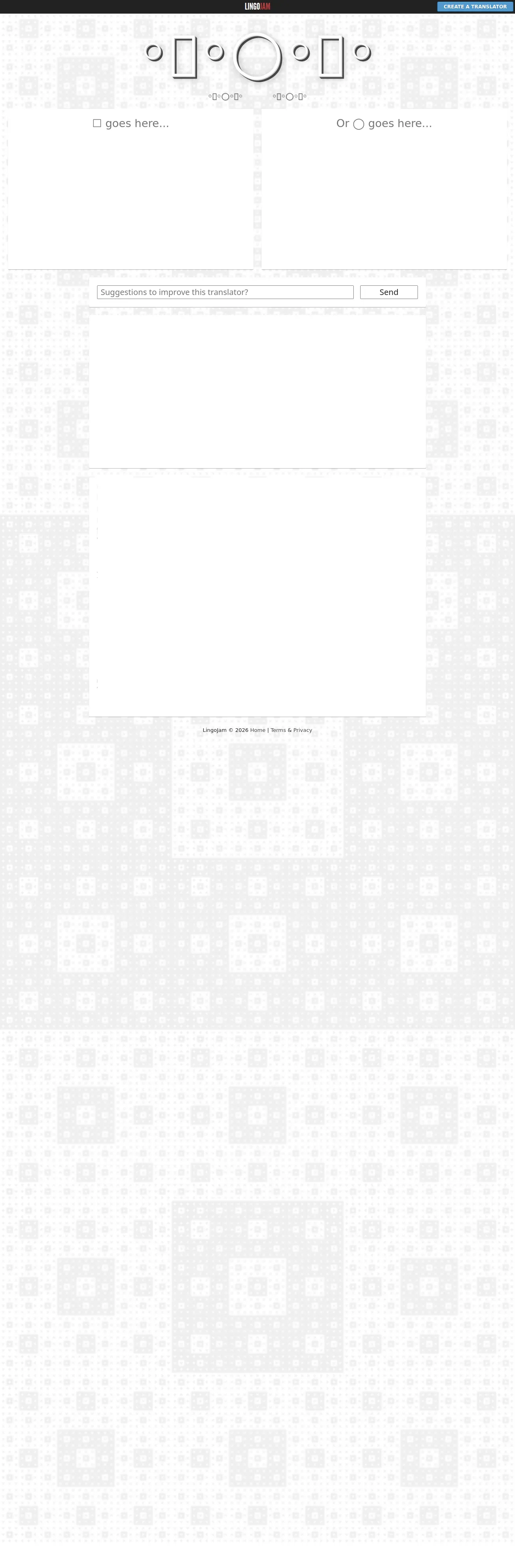 取得元URL: https://lingojam.com:443/%E2%97%A6%E0%AD%A6%E2%97%A6%E2%97%AF%E2%97%A6%E0%AD%A6%E2%97%A6