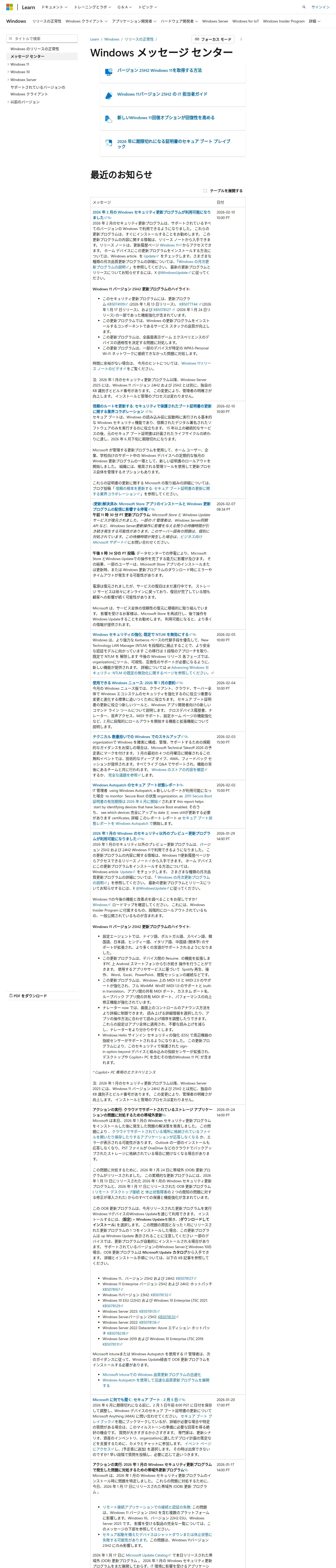 https://learn.microsoft.com:443/ja-jp/windows/release-health/windows-message-center