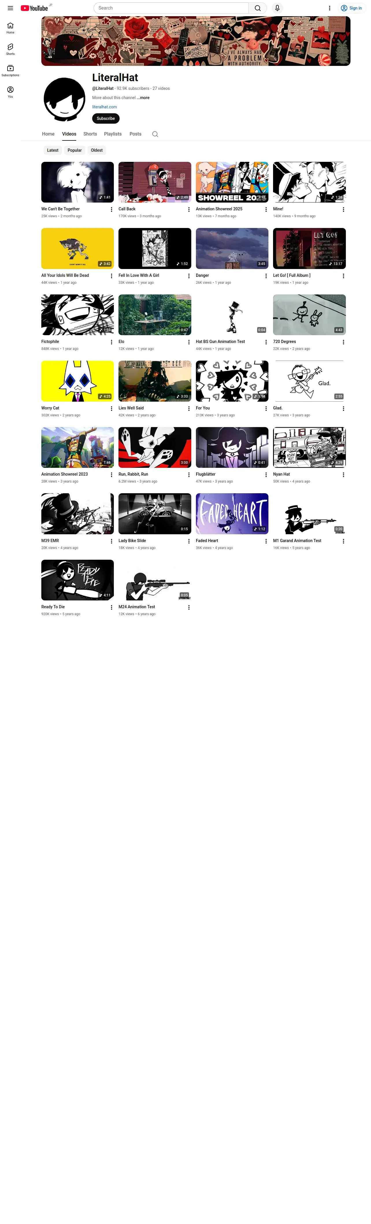 https://www.youtube.com:443/@LiteralHat/videos