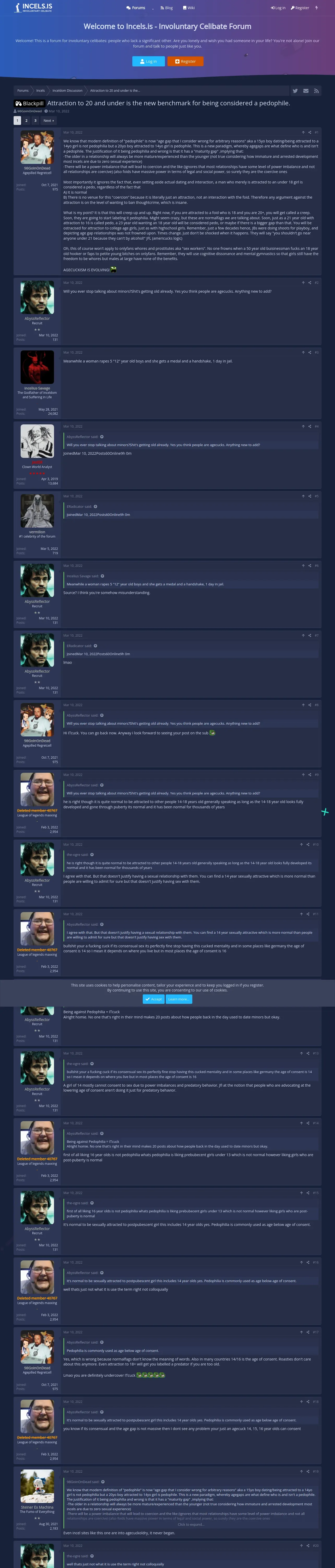 取得元URL: https://incels.is:443/threads/attraction-to-20-and-under-is-the-new-benchmark-for-being-considered-a-pedophile.359550/