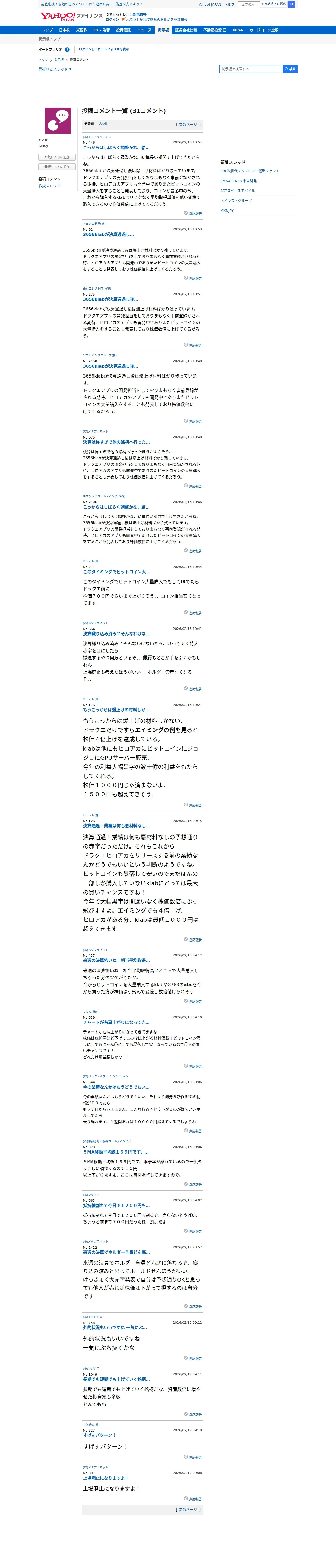 https://finance.yahoo.co.jp:443/cm/personal/history/comment?user=36206e2f63a9565183ea11a10a9f7b37250864720b2d6614c2647c4a9d67ef7b