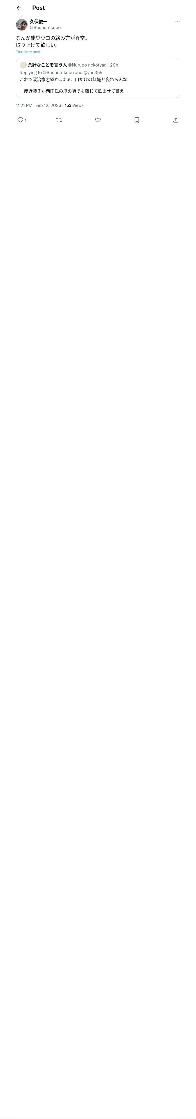 https://x.com:443/Shuuun1kubo/status/2021952893964935264