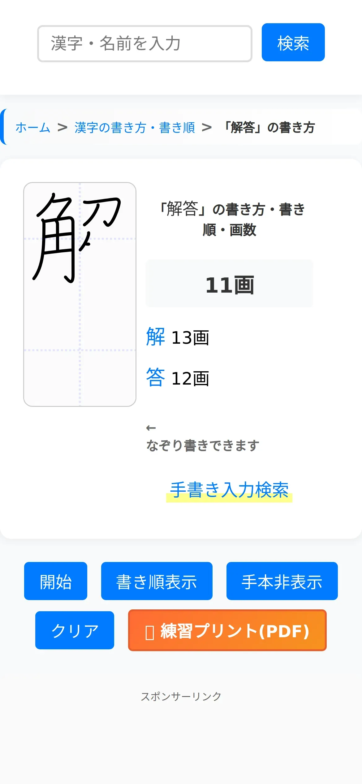 取得元URL: https://kanji.reader.bz:443/stroke/more/%E8%A7%A3%E7%AD%94