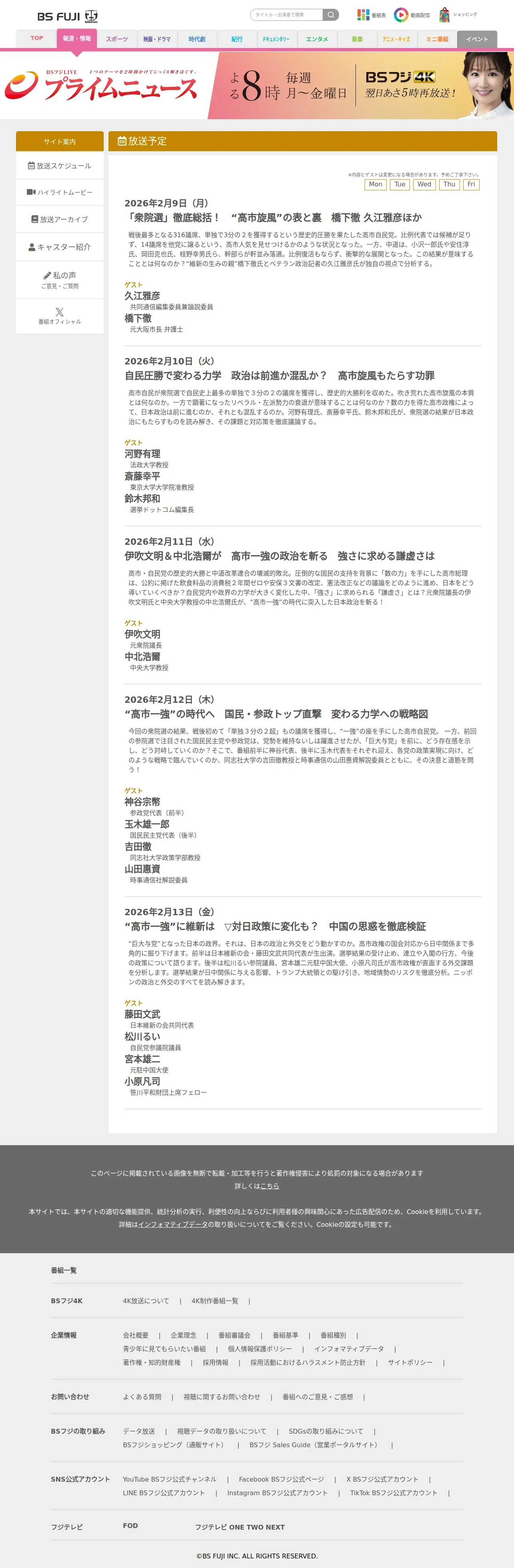 https://www.bsfuji.tv:443/primenews/schedule/index.html