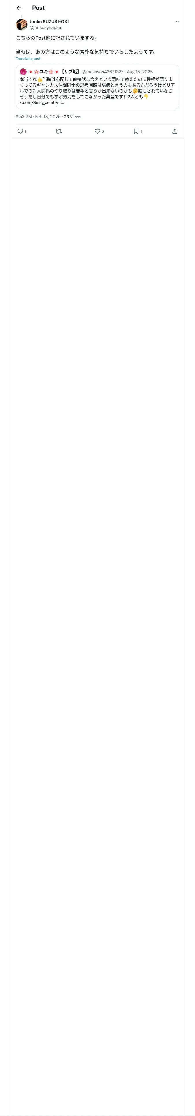 取得元URL: https://x.com:443/junkosynapse/status/2022292995593343280?s=46