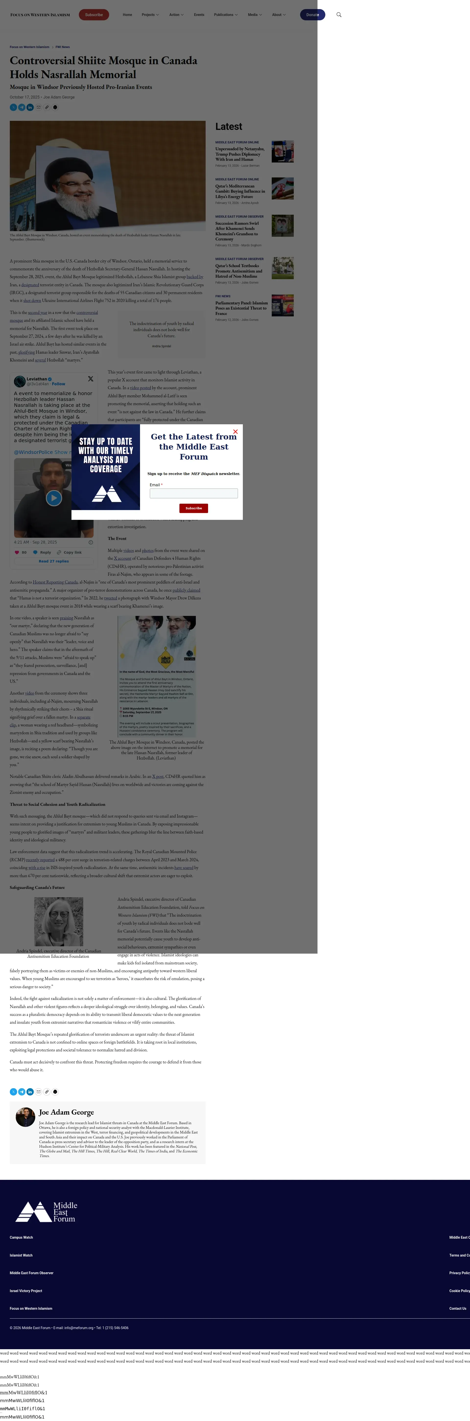 https://www.meforum.org:443/fwi/fwi-news/controversial-shiite-mosque-in-canada-holds-nasrallah-memorial