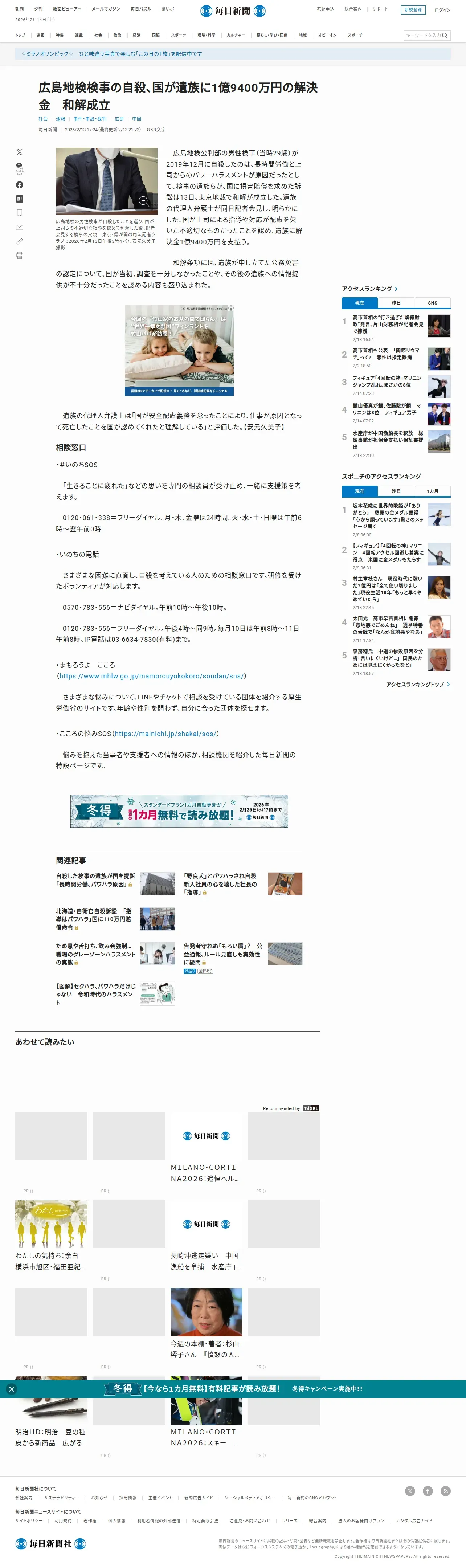 https://mainichi.jp:443/articles/20260213/k00/00m/040/261000c