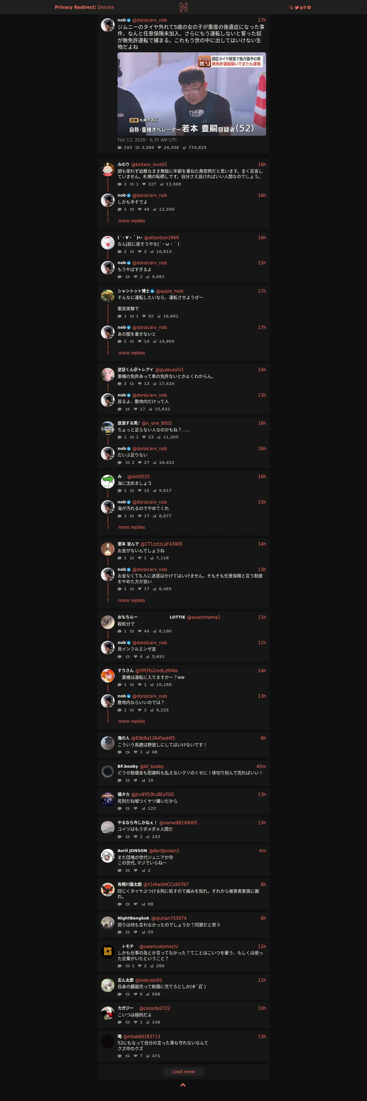 取得元URL: https://nitter.privacyredirect.com:443/doroicarv_nob/status/2022198000429494772
