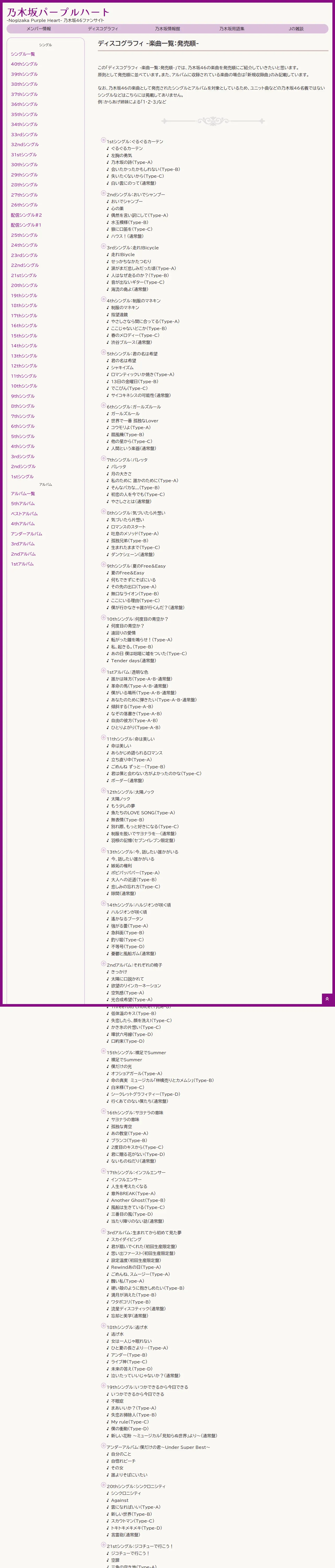 https://www.nogizaka.info:443/discography/tracklist-releaseorder.html