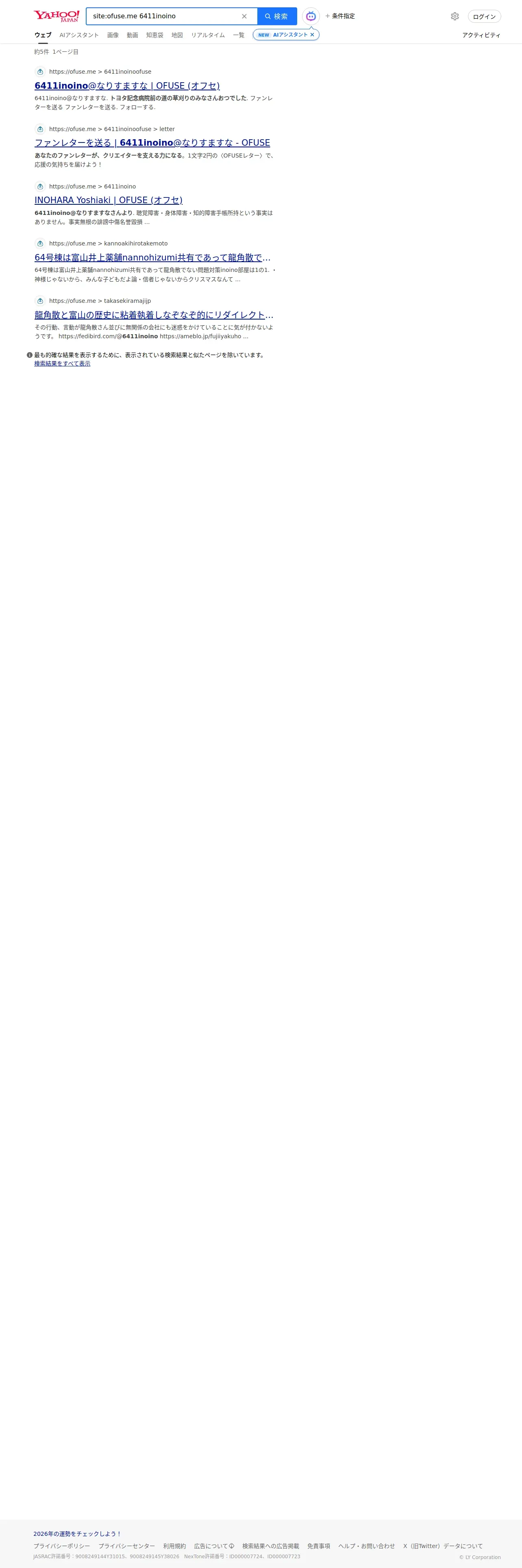 https://search.yahoo.co.jp:443/search?p=site%3Aofuse.me+6411inoino