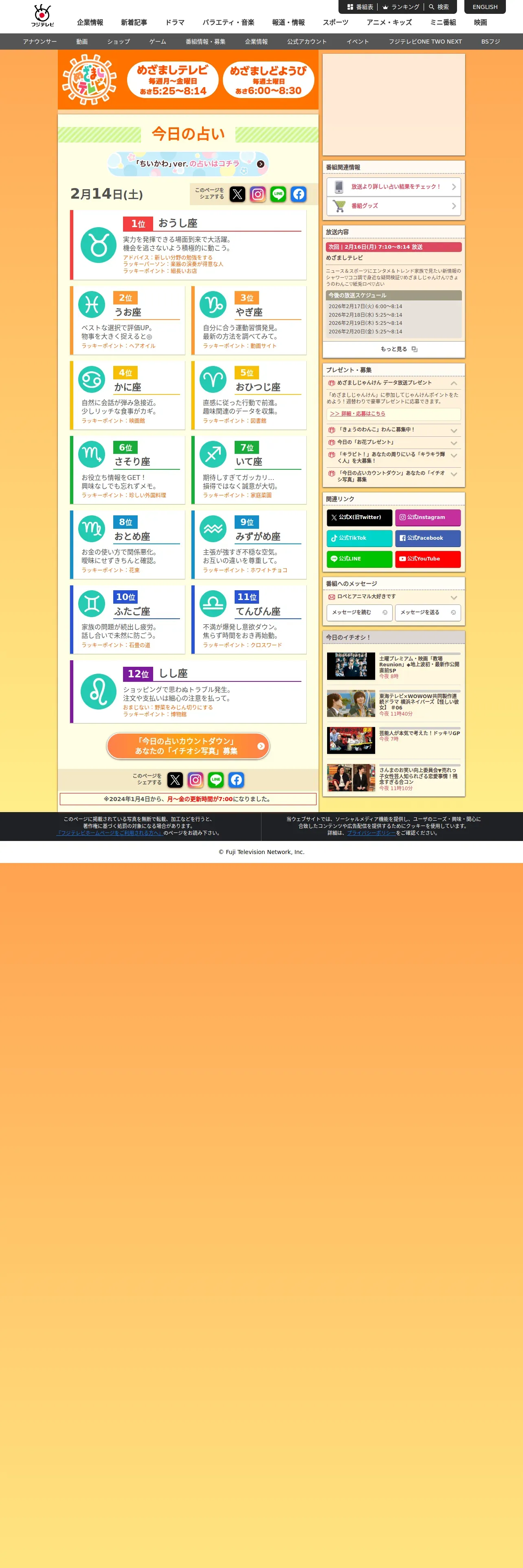 https://www.fujitv.co.jp:443/meza/uranai/index.html