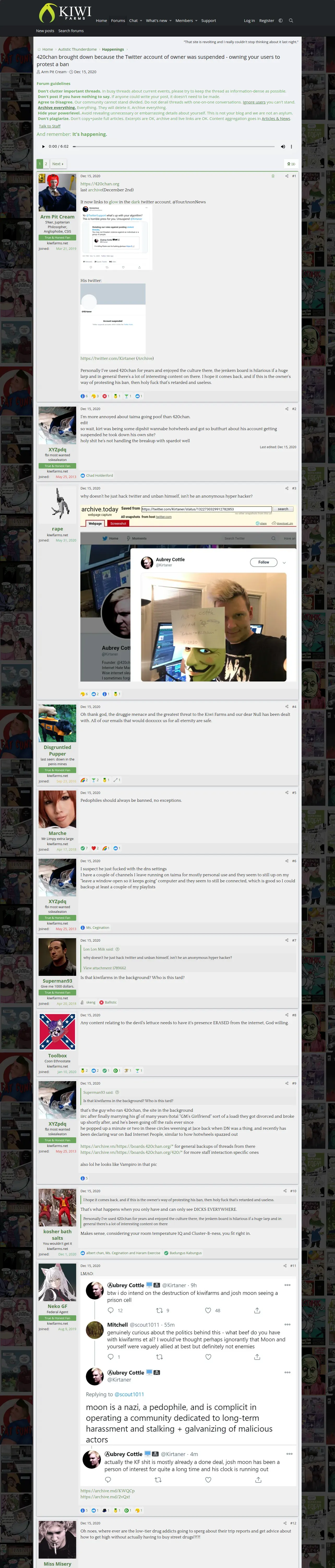 取得元URL: https://kiwifarms.st:443/threads/420chan-brought-down-because-the-twitter-account-of-owner-was-suspended.81476/