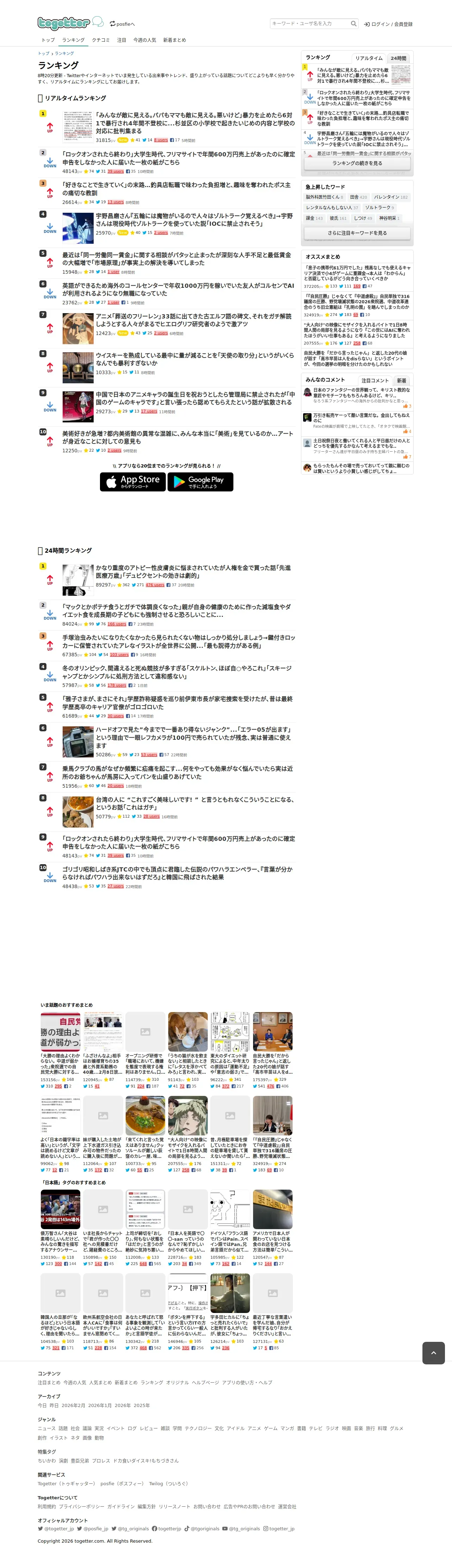https://togetter.com:443/ranking